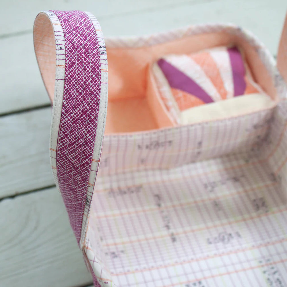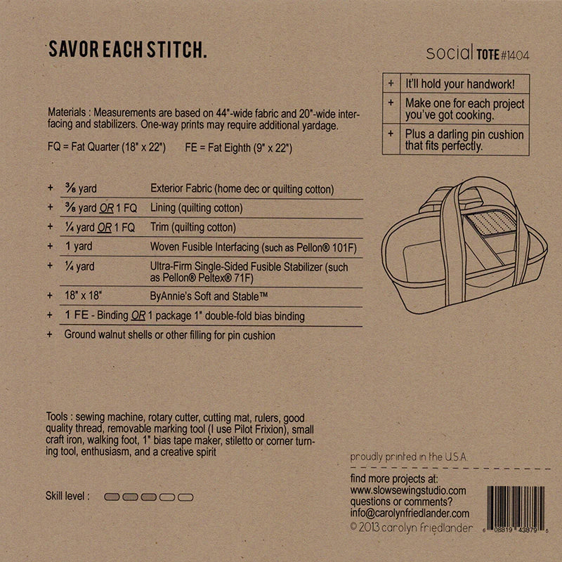 One of the beauties of handwork is the freedom it gives you to be mobile. The social tote is all about keeping your goodies together whether you are on-the-go with your buddies or toting your project around the house. Let’s keep it all together and looking good.
