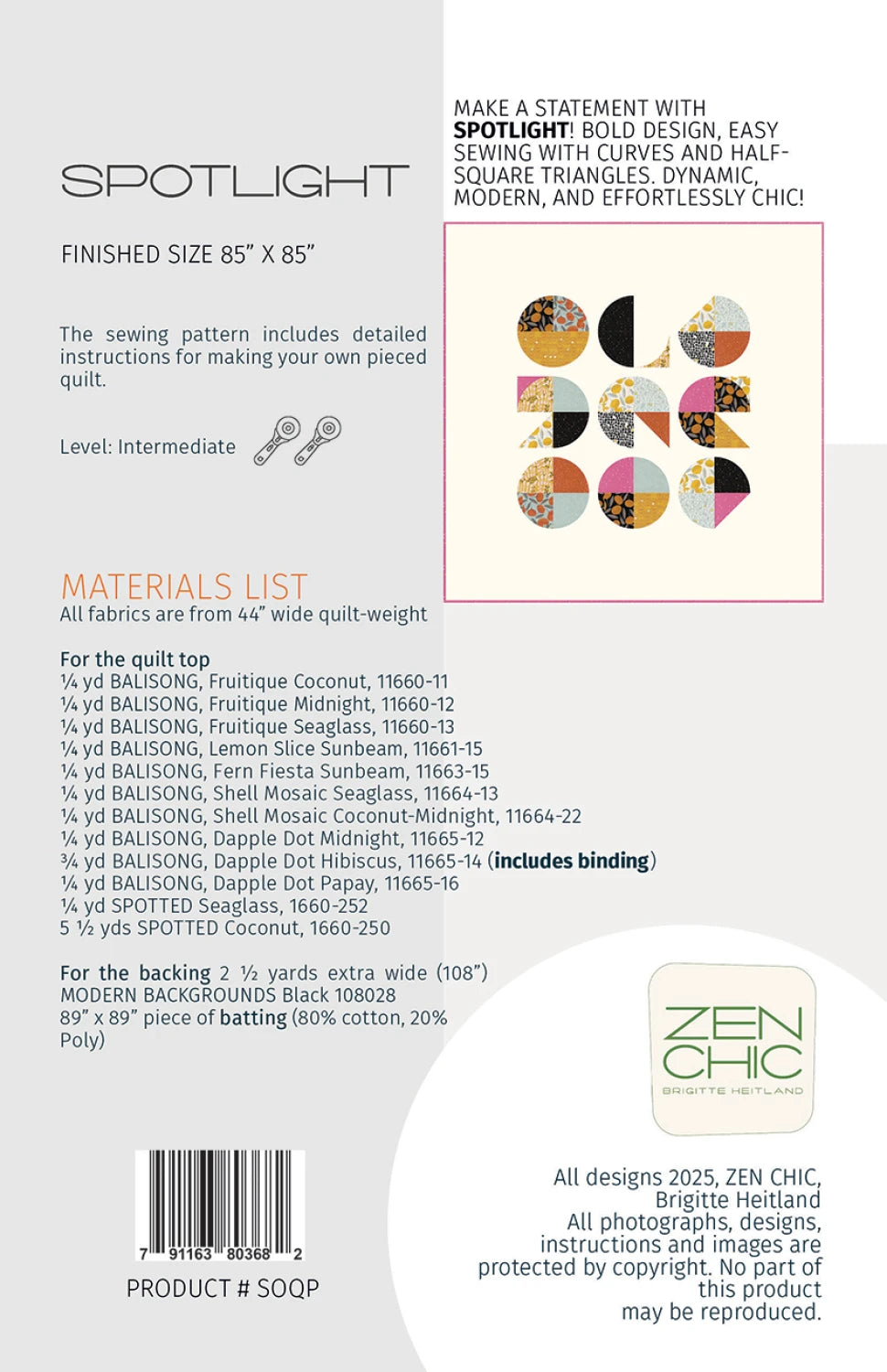 Make a statement with spotlight! bold design, easy sewing with curves and half-square triangles. dynamic, modern, and effortlessly chic!