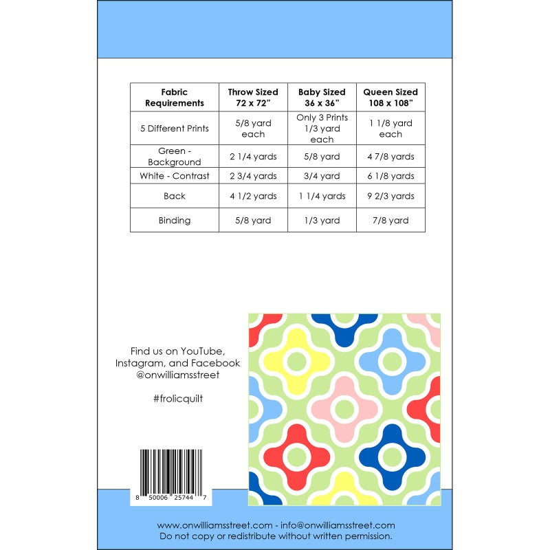 Frolic Quilt Pattern is backordered and will ship as soon as it is back in stock.