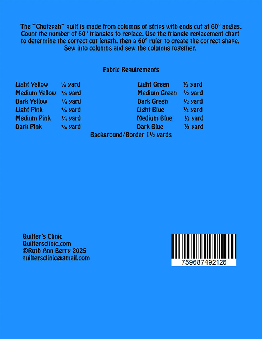 The “Chutzpah” quilt is made from columns of strips with ends cut at 60° angles. Count the number of 60° triangles to replace.
