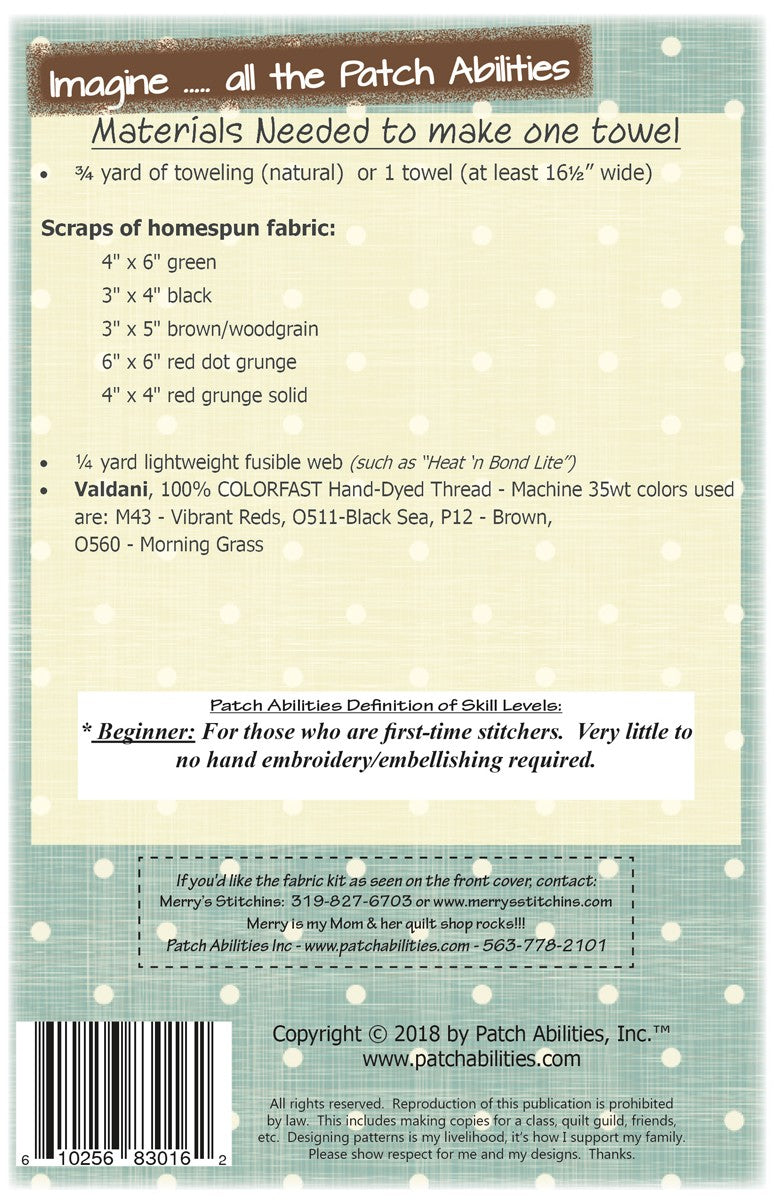 You and your friends will love a Christmas kitchen tea towel featuring an old red vintage truck carrying the holiday tree. Pattern features: fusible applique, directions for hemming raw ends of toweling, embroidery stitch diagrams, pattern sheet (unlabeled and non-reversed) for use with personal cutting machines. Look for more seasonal towel designs in our towel of the month series. Tea towel not included.