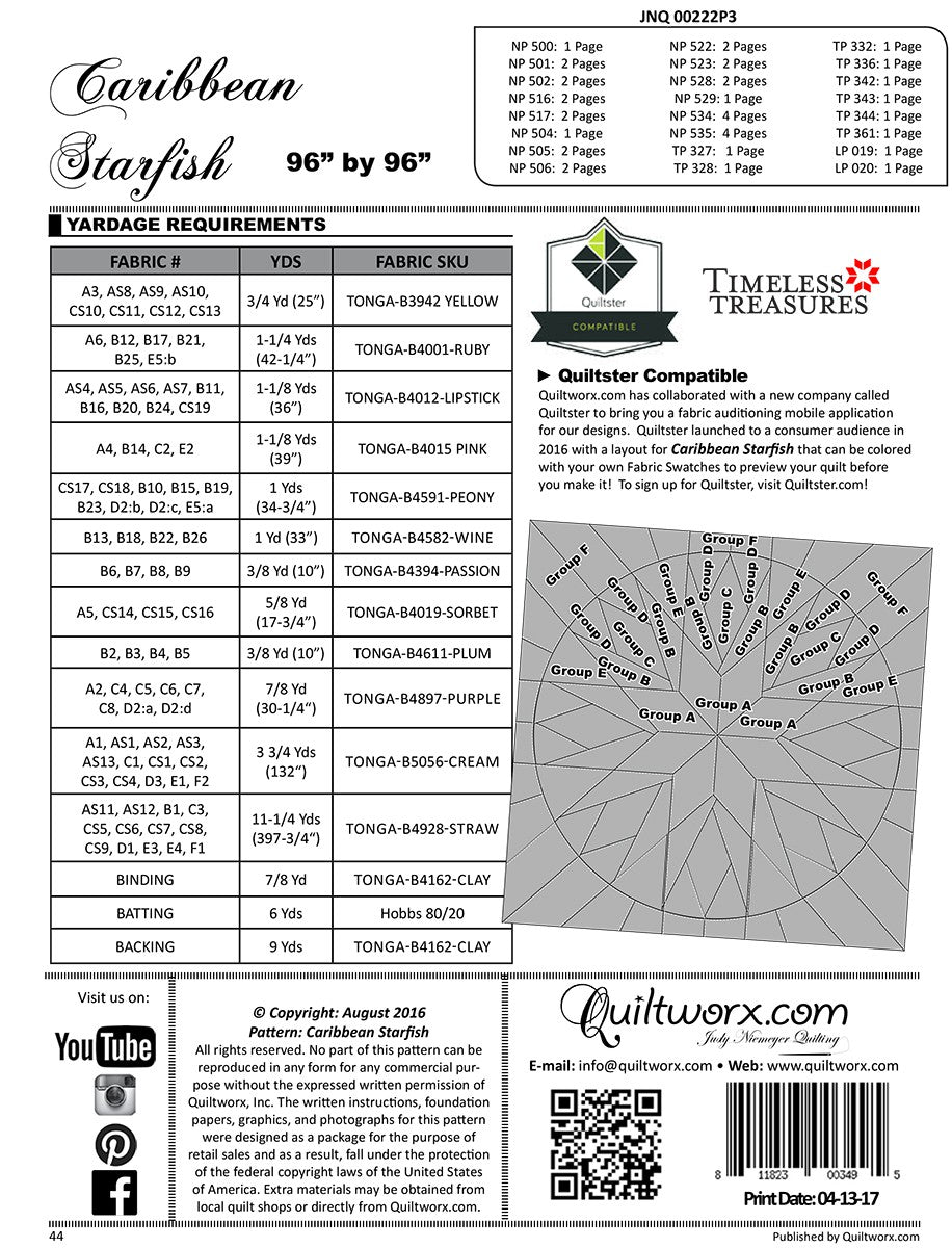 The Caribbean Starfish pattern is part of the Congo Star Mixer Series, which was designed to bring a new look to a pattern that Quiltworx has sold for years called the Amazon Star.