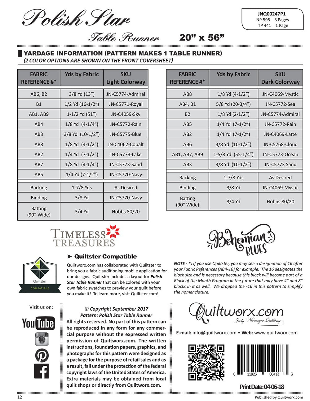 This pattern includes enough foundation papers for one table runner. Size 20in x 56in