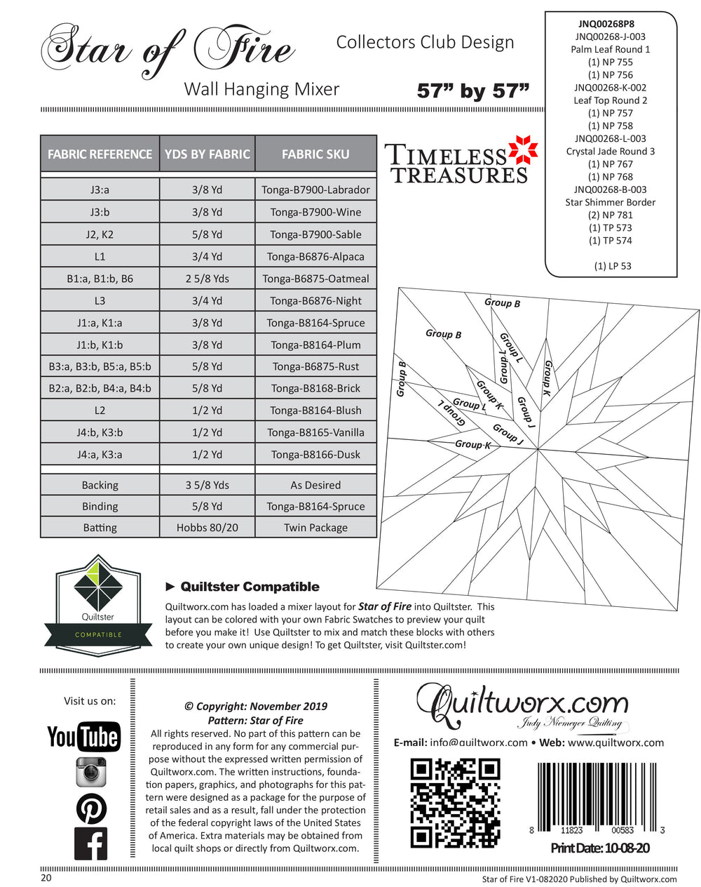 Star of Fire is constructed using four distinct sections. The quilt blocks were designed by Judy and Bradley Niemeyer. We have only published 500 of them with the purpose of showcasing our Tonga Batik Mini Collection called Paprika.