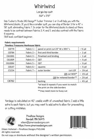 In order for the Whirlwind blocks to stand out there needs to be contrast between Fabrics 3, 4, and 5, and also contrast with the Fabric 6 squares.