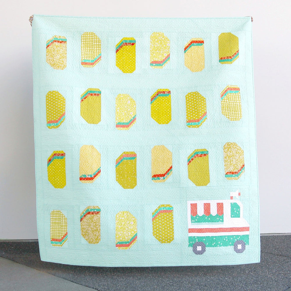 Sweet Treat Quilt pattern measures 55-1/2in x 61in and includes bonus instructions for making a Taco Truck quilt.