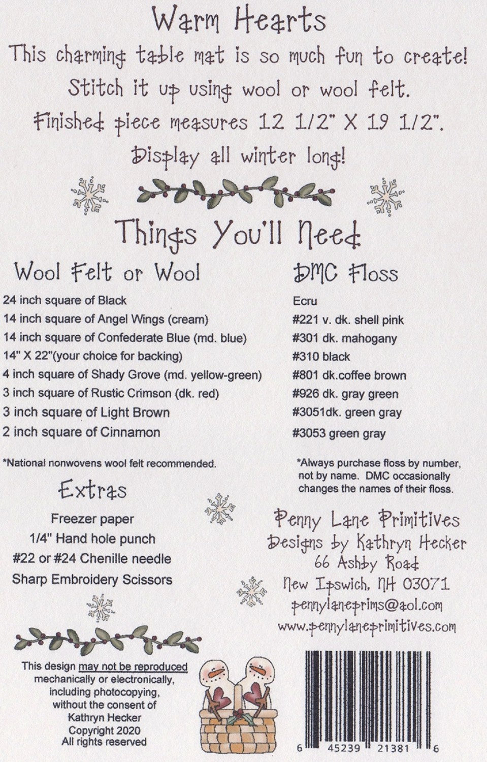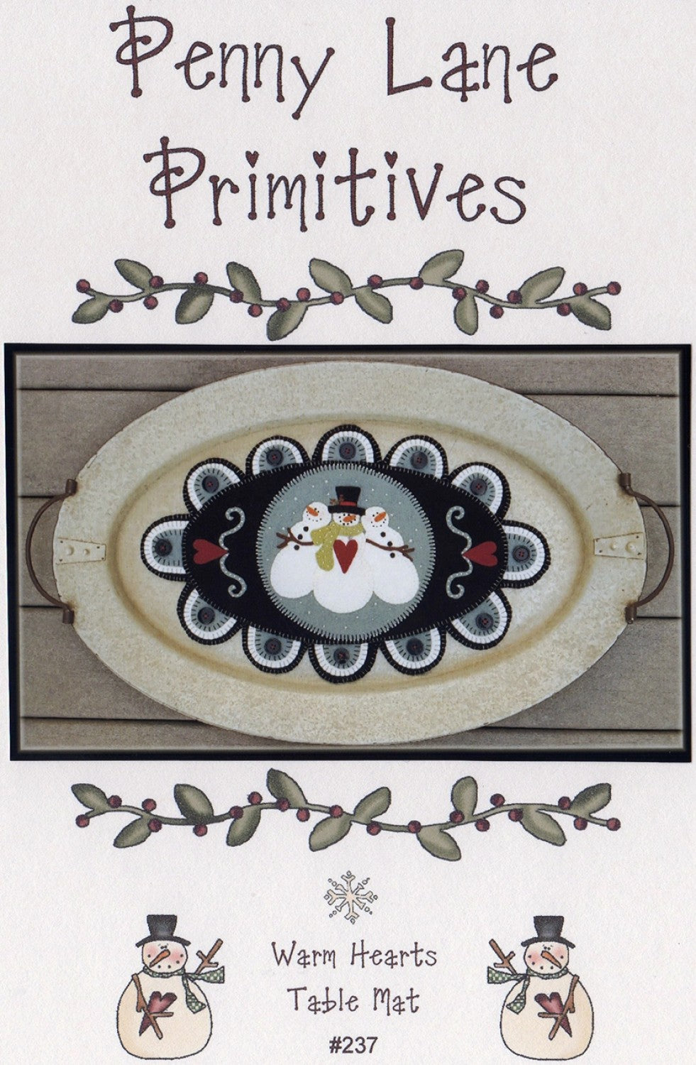 Charming snowmen wool applique penny rug table mat
