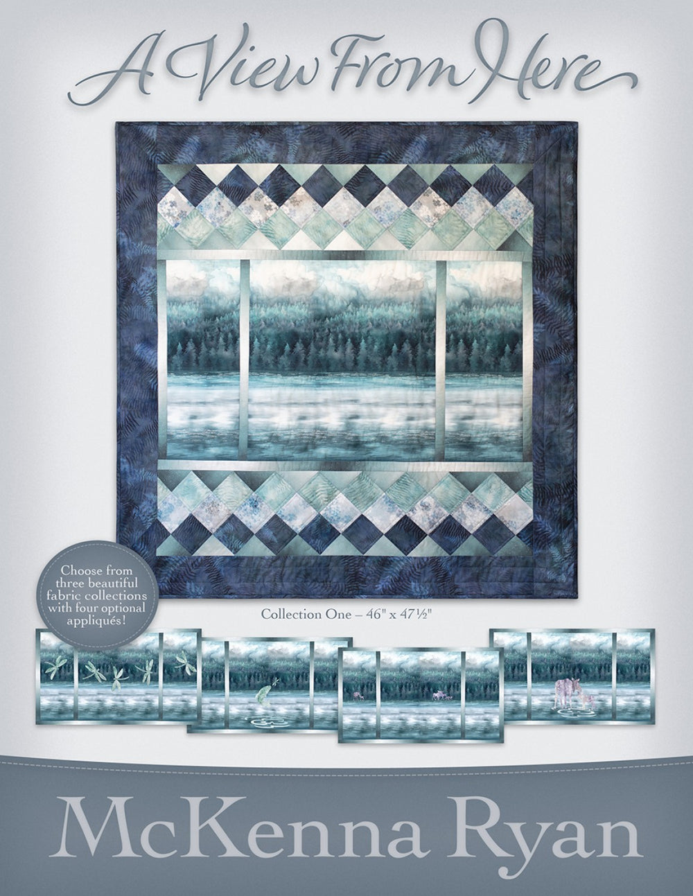 This is the pattern for A View From Here, a pieced pattern offering a choice of three different fabric collections. Directions for adding optional appliques is included. 46" x 47 1/2"