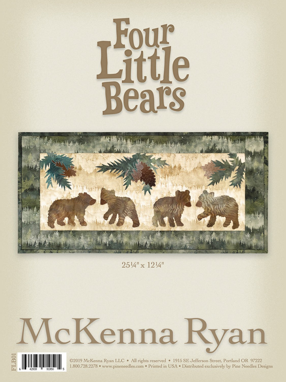 This is the applique pattern for the single-block quilt, Four Little Bears. Features Painted Forest digital fabrics by McKenna Ryan for Hoffman Fabrics. Measures 25 1/4" x 12 1/4".