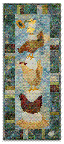 Which Came first? is a delightful addition to McKenna Ryans popular All Cooped Up series. Mix and Match with any of the 8in x 8in All Cooped Up Blocks or add the lovely All Cooped Up pieced quilt. See what hatches - the possibilities are practically endless.