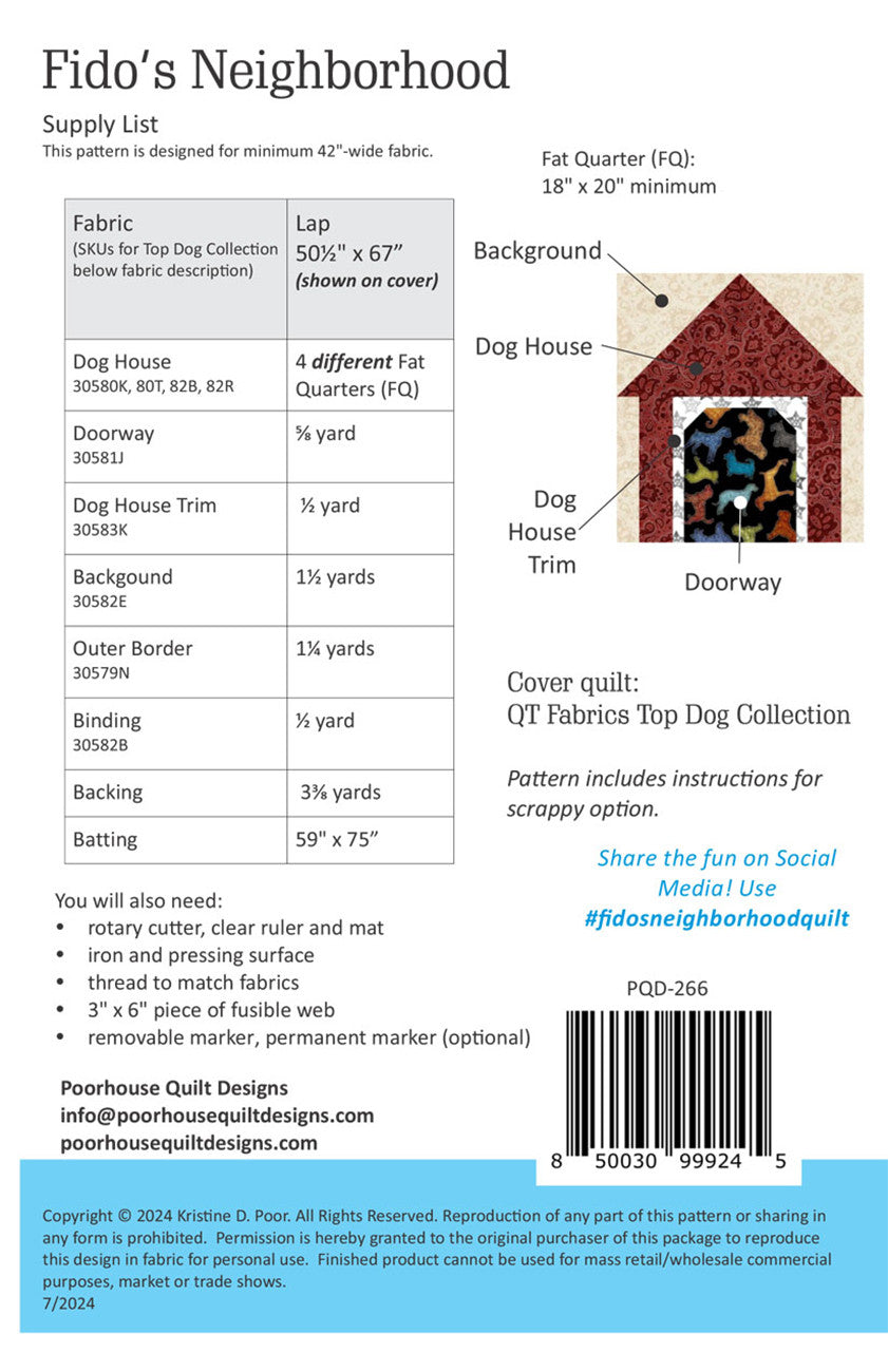 Fido's Neighborhood Quilt Pattern is backordered and will ship as soon as it is back in stock.