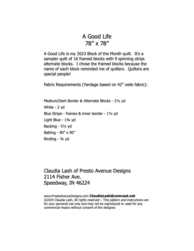 A Good Life Quilt Pattern