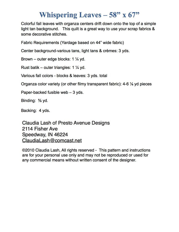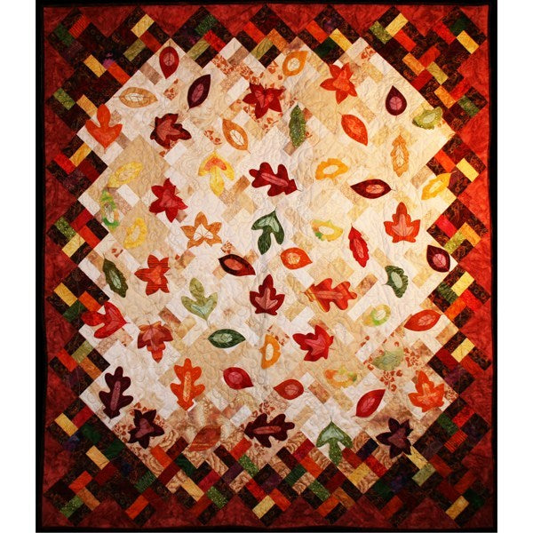 Fall leaves can be so beautiful that sometimes they quietly call you to imitate the glorious color and rhythm of the season. This quilt is composed of various leaves laid on a rather simple background. The inside of each leaf is a piece of organza with a bit of glitz. I appliqued the leaves with a blanket stitch and used a satin stitch to show the veins. Of course, it would also look lovely with hand applique' and embroidered veins.