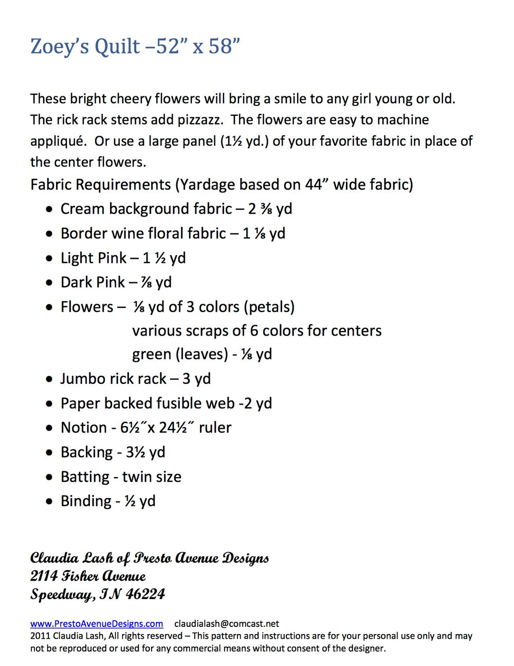 When I learned that our newest granddaughter was going to be named Zoey, I decided that she needed a zigzag quilt. She is the third beautiful little flower in that family. So this is Zoey’s zigzag quilt, and although it was designed for a young girl, older girls might like it also. The quilt consists of 3 main sections, a large center section for the flower pot with flowers, and a zigzag section on either side of the center.