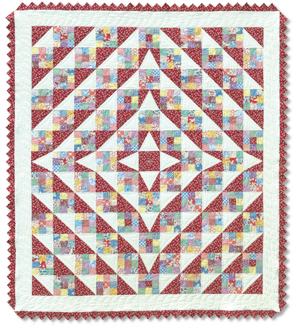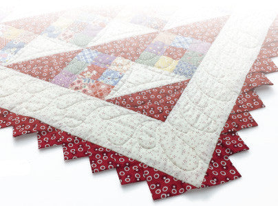 Patches of Life is made with Nine-Patch, Triangle in a Square and Triangle Pieced Square Blocks. The Triangle in a Square blocks give this quilt the illusion of curves. You can finish the outside edge with a Straight, Wave or Sawtooth Border.