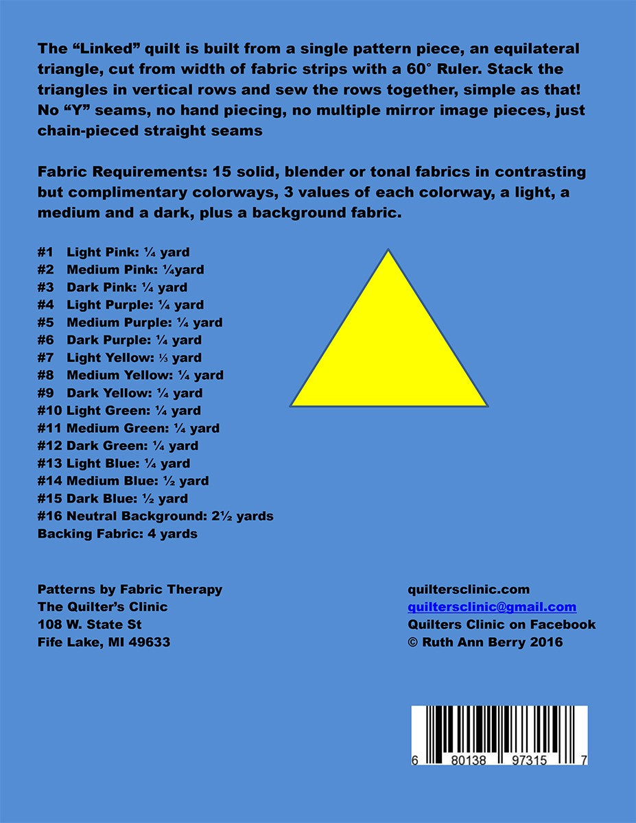 The illusion of 3D created with vertical rows of equilateral triangles and no “Y” seams, finished size: 48in x 62in