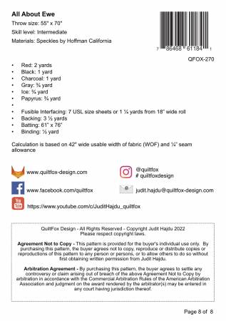 All About Ewe Quilt Pattern is backordered and will ship as soon as it is back in stock.