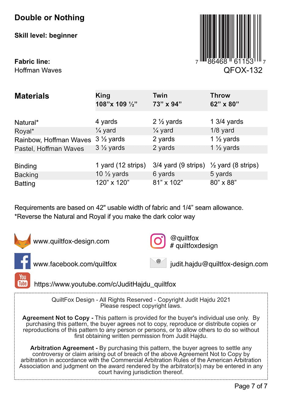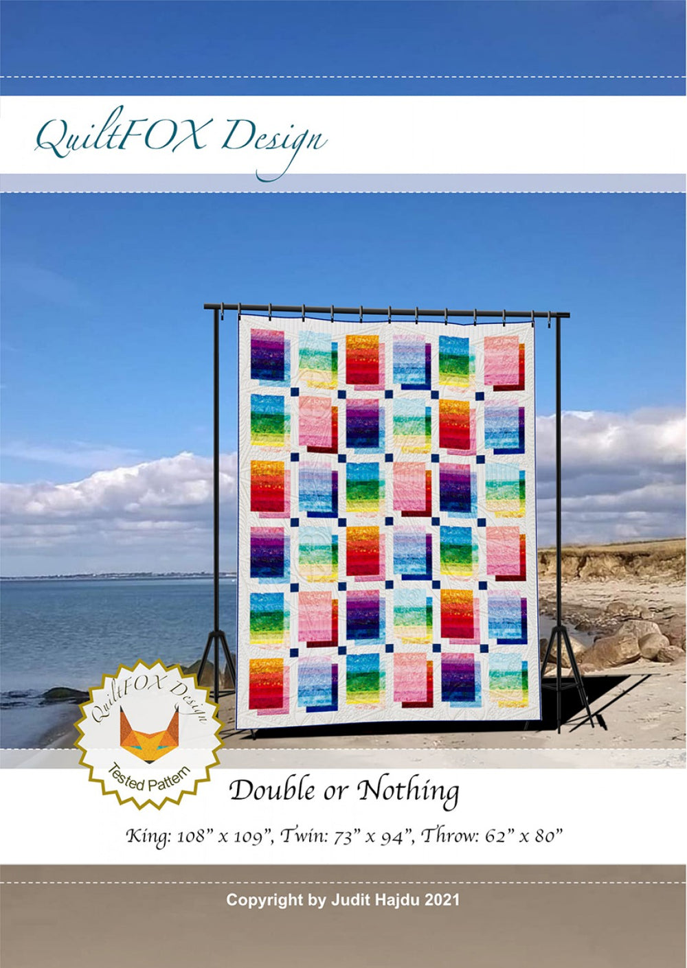 The quilt features the rainbow and pastel colors of the Hoffman Waves fabric collection. The rainbow and pastel blocks are alternating and shadowing each other. The blocks are assembled with sashing. Sizes included in the pattern: King 108in x 109in, Twin 73in x 94in, Throw 62in x 80in I recommend this pattern for confident beginners.