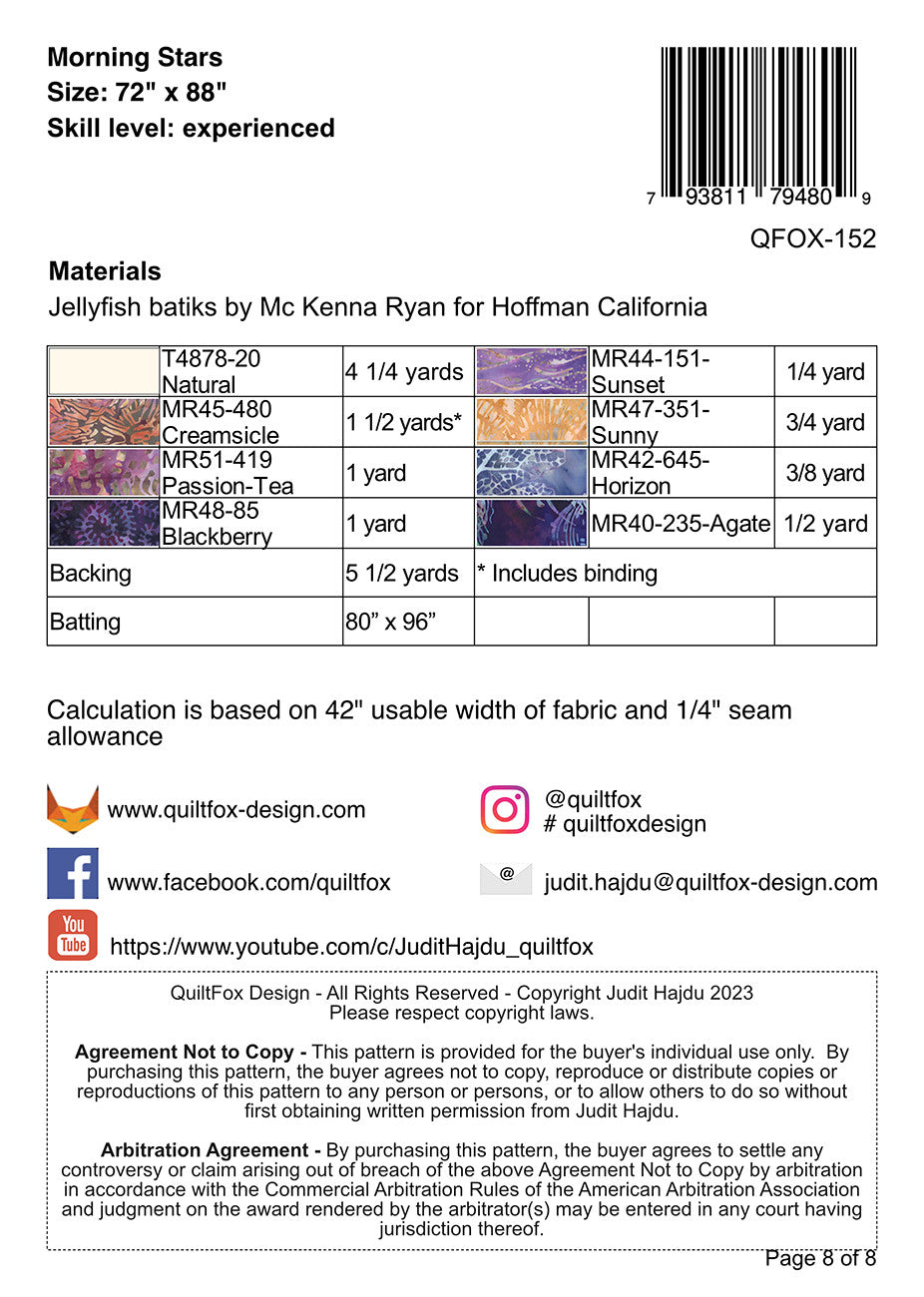 Morning Stars Quilt Pattern is backordered and will ship as soon as it is back in stock.