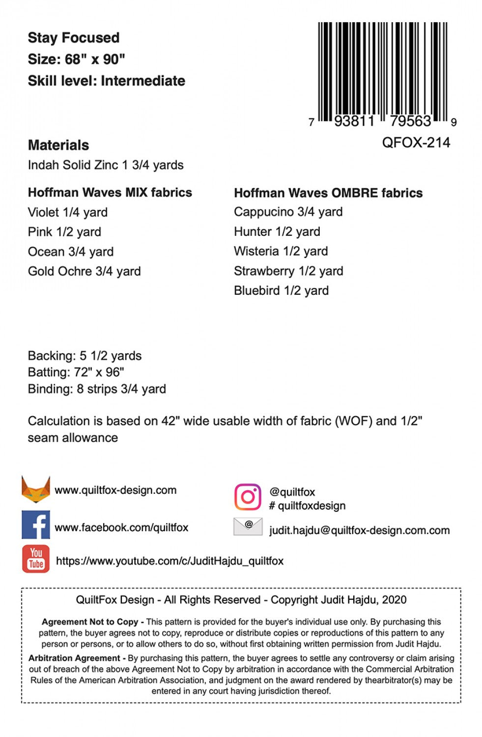 Stay Focused and keep weaving these gorgeous fabrics. The quilt is featuring the Hoffman Waves, a spectrum digital print collection. The quilt measures 68" x 90".