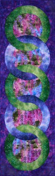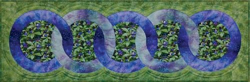 A celebration of the Tongass National Rainforest, and my town of Sitka, Alaska, this table runner is perfect for any type of focal fabric. The interlocking rings are installed using easy appliqué, or fusible web. The instructions are illustrated, and have been well tested by Alaskan quilters. A bonus placemat is 12” x 18”.