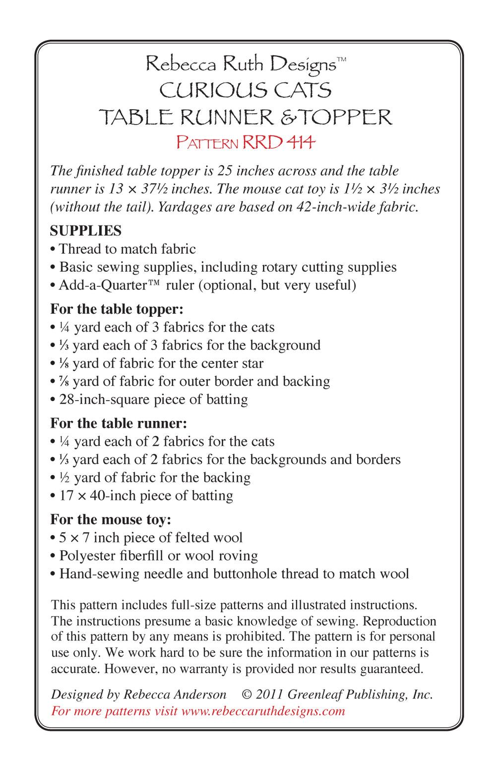 Curious Cats Topper & Runner Downloadable Pattern is backordered and will ship as soon as it is back in stock.