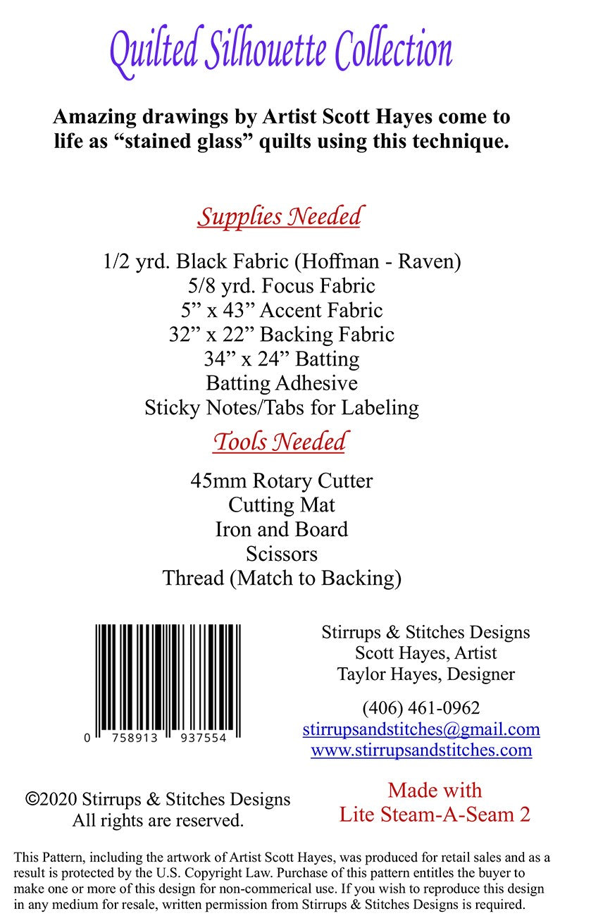Sea Turtle Laser Cut Silhouette Quilt Kit comes with ready-to-iron pre-cut black fabric as well as easy-to-follow instructions to complete your project. The laser cut fabric has Lite Steam-a-Seam 2 on it, so simply iron it to your favorite batik and add to the center of your quilt. This kit also includes 8 laser cut border panels. Approximate size 32" x 22".
