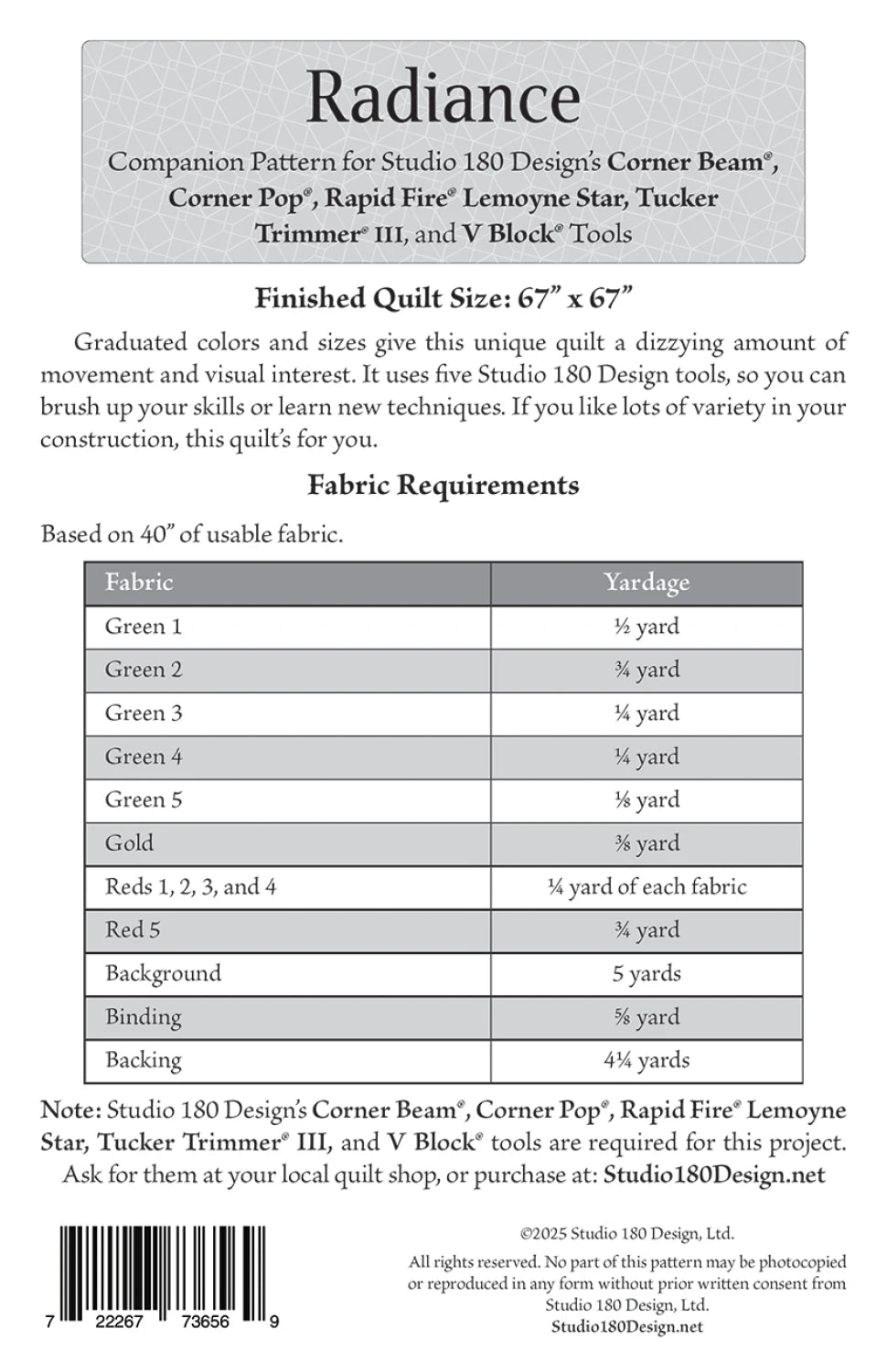 Radiance Quilt Pattern is backordered and will ship as soon as it is back in stock.
