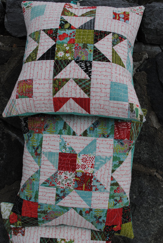 As you can see from the pictures, these pillows look great in an assortment of colors and styles. I made each pillow with a mini charm pack from Moda.
