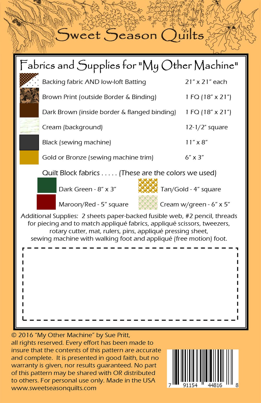 This Kit makes an 18" by 18" wall hanging and includes pre-fuse and laser cut applique, PLUS background and border fabrics as well as the pattern.