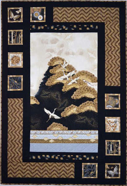 Oriental Harmony is a beautiful wall hanging using a 24� x 44� panel or fabric with a bold print. With simple piecing, the assembly is easy and fast. Select coordinating fabrics to highlight the center fabric for a harmonious design.