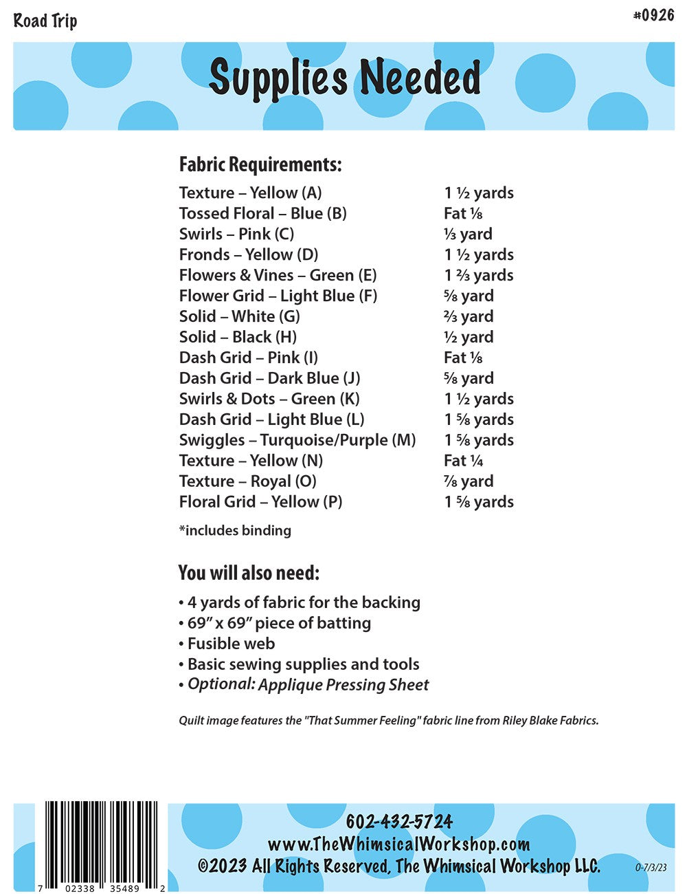Road Trip Quilt Pattern is backordered and will ship as soon as it is back in stock.