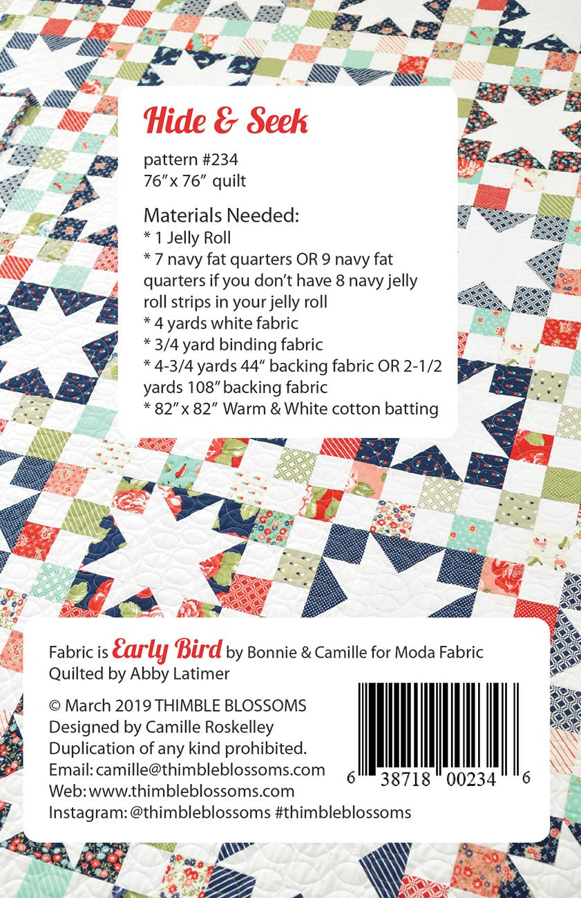 76" x 76" quilt, jelly roll friendly, simple piecing. Full color. Fabric is Early Bird by Bonnie & Camille.