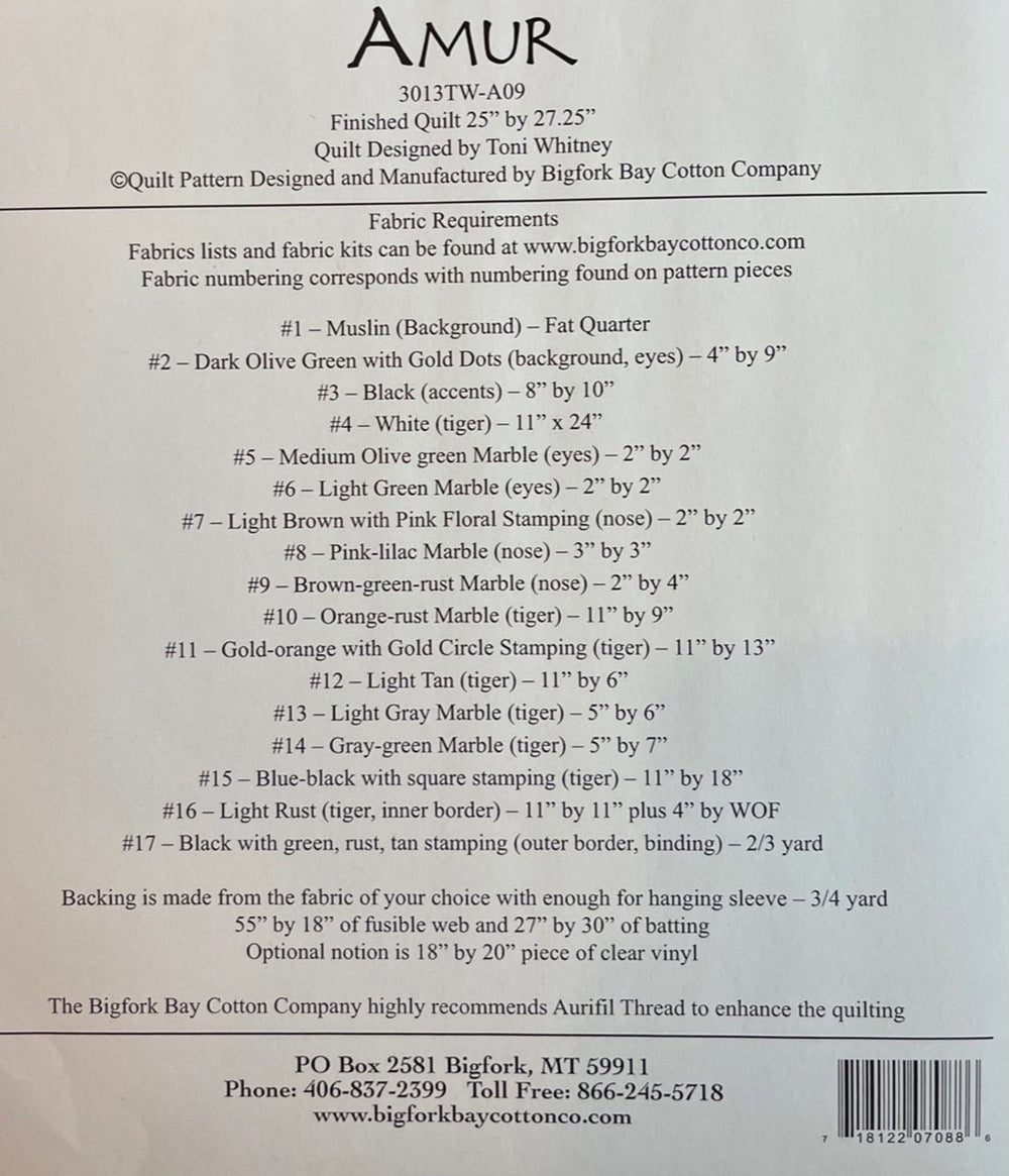 Amur Quilt Pattern is backordered and will ship as soon as it is back in stock.