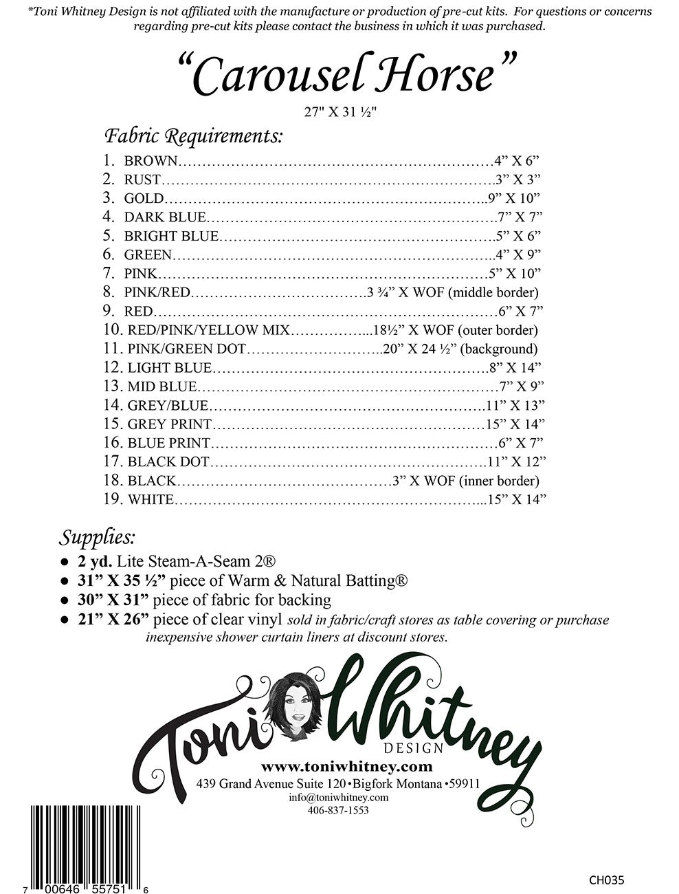 Raw Edge fusible applique Carousel Horse art quilt pattern 27in.x31 1/2in.