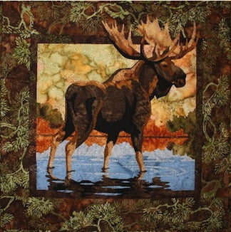 13-1/2in x 15-1/2inHidden Lake is a great beginner quilt to fusible applique, one suggestion would be to have the pattern enlarged to twice its size if it is your first time, there are some small pieces that are much easier to free motion quilt and cut at a larger size.