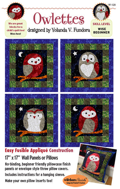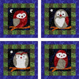 Easy fusible applique construction make this a wise beginner pattern. These four owls make great pillows or blocks for a child's quilt too. Take your pick of techniques: