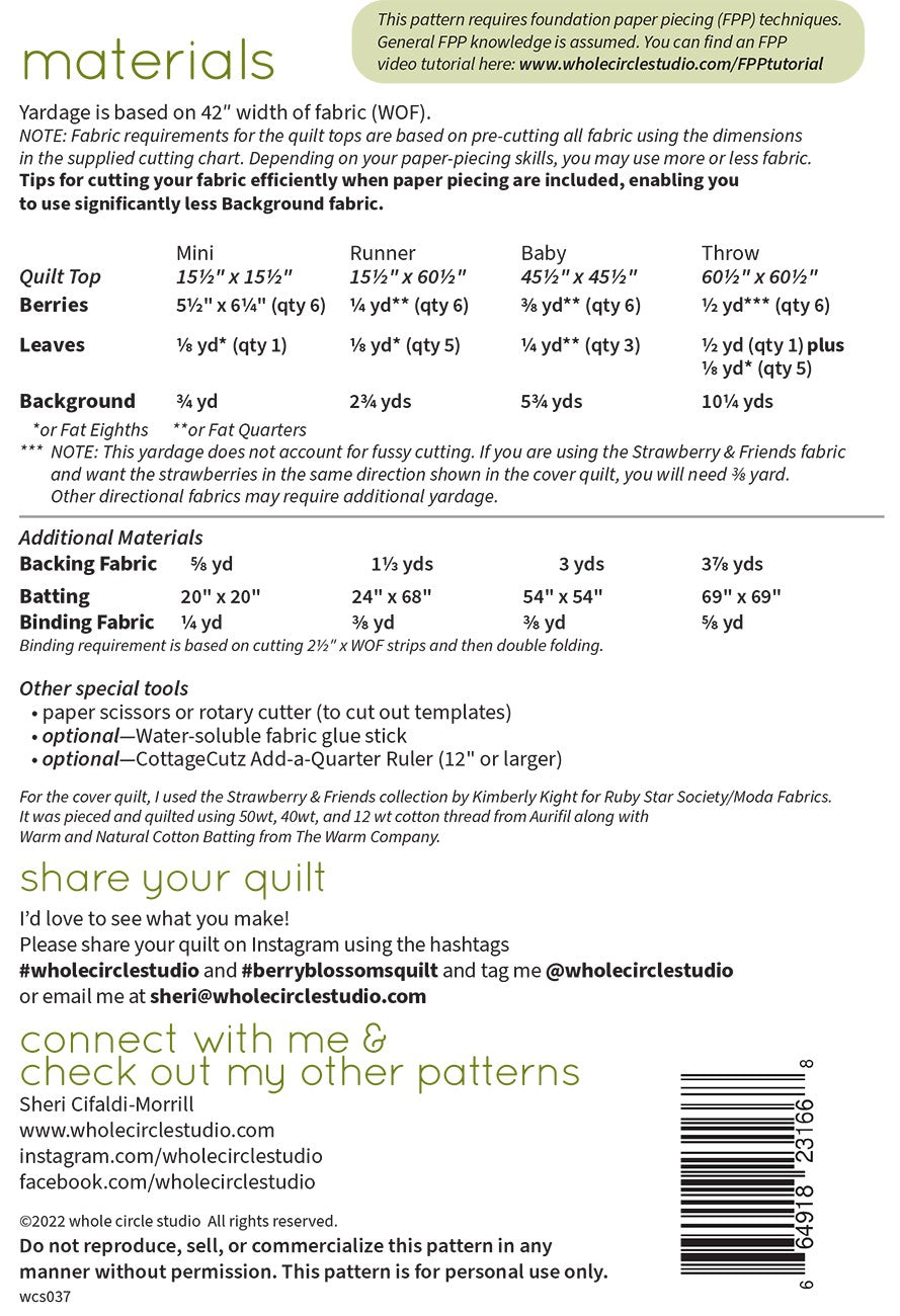 The perfect modern quilt project to freshen up your home, Berry Blossoms pairs nicely with prints, blends, solids or a combination and is fat eighth and fat quarter friendly.