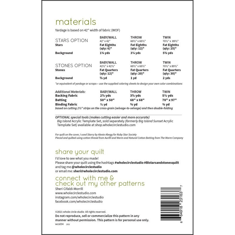 This pattern is a bright, modern twist on the traditional Drunkard’s Path block. Big Island Stars & Stones is a fully tested pattern that contains detailed instructions and diagrams, making it a breeze to piece. Instructions are included for three sizes—Baby/Wall, Throw, and Twin. All the templates required to make this quilt are included in the pattern.