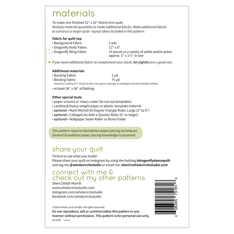 Dragonfly Dance is a graphic wallhanging / mini quilt that uses foundation paper piecing techniques. Make additional blocks to make a larger quilt (layout ideas are provided to make a lap, twin or queen quilt). This tested pattern contains both detailed instructions and diagrams, making it easy to piece.