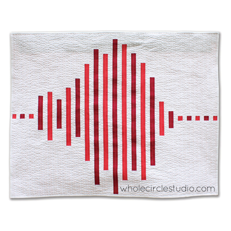Inspired by frequency waves, Modern Love is an abstract interpretation of what the word “love” might look like. This tested pattern contains both detailed instructions and diagrams, making it easy to piece. Instructions are provided for three sizes: Wall, Throw and Queen. Included in this pattern are row locations for all of the fabric pieces so additional colors and/or prints can be added.