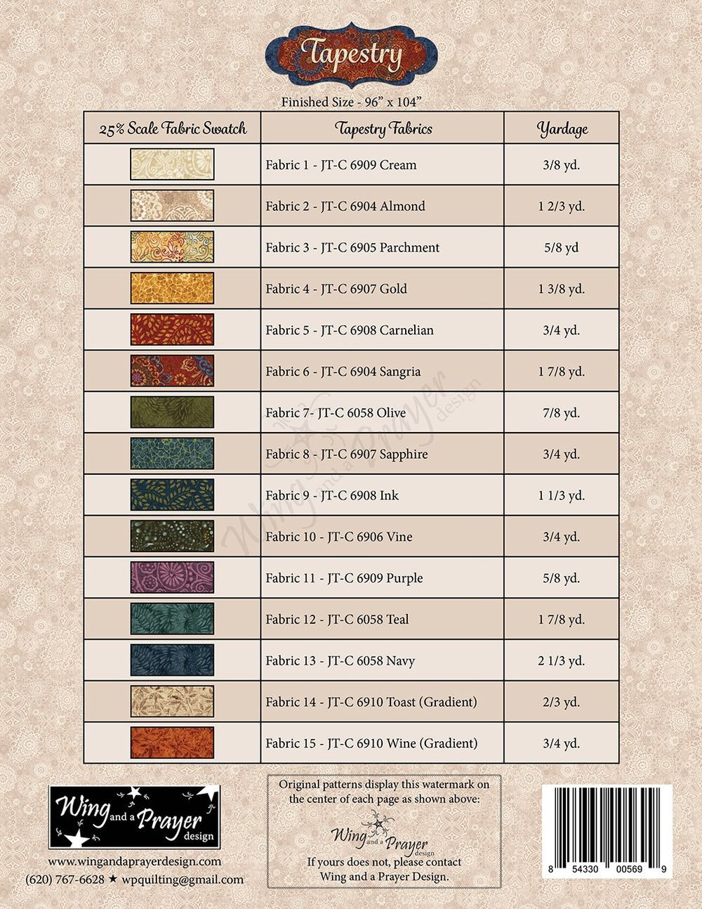 Tapestry is backordered and will ship as soon as it is back in stock.