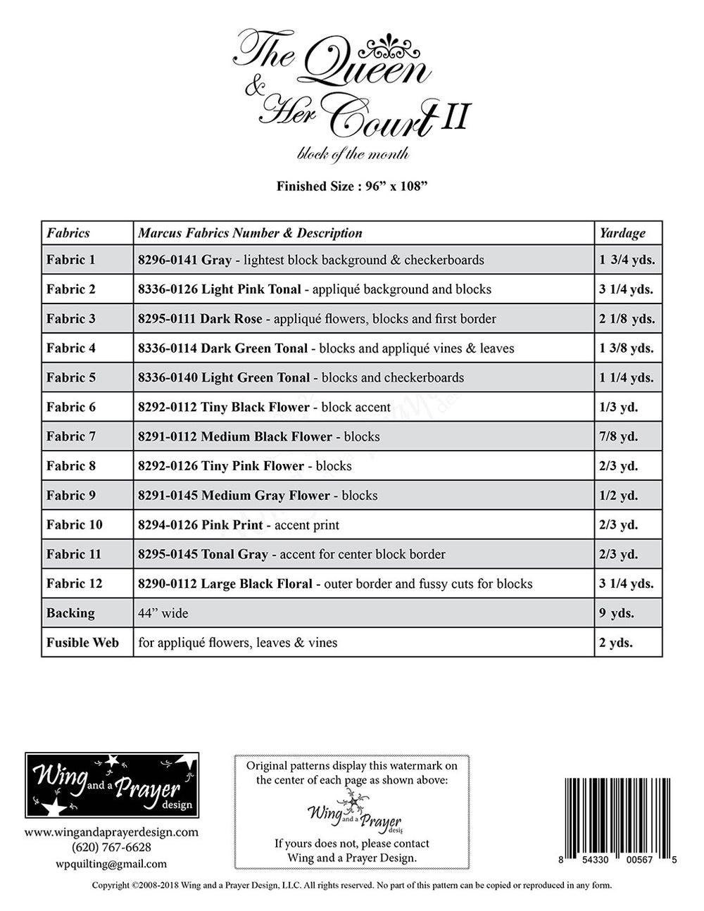 The Queen and Her Court Block of the Month II is backordered and will ship as soon as it is back in stock.