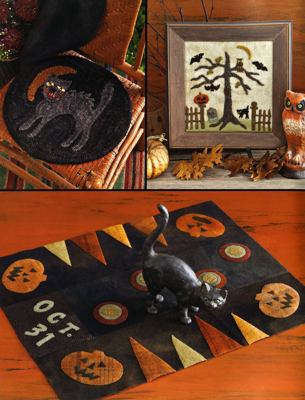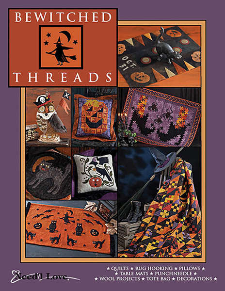 In Bewitched Threads, youll find 17 spellbinding projects to enjoy this fall! When fall is in the air and Halloween fast approaches, your mind begins to conjure up images of witches flying on brooms & cats howling at the moon! Its time to get out old crepe paper decorations and carve a jack-o-lantern! Halloween is a great reason to make a candy corn colored quilt, sew a glowing jack-o-lantern pillow or hook a black cat rug!