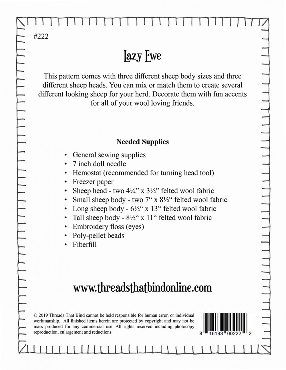 Three stuffed wool sheep. This pattern comes with three different sheep body sizes and three different sheep heads. You can mix or match them to create several different looking sheep for your herd. Decorate them with fun accents for all of your wool loving friends.