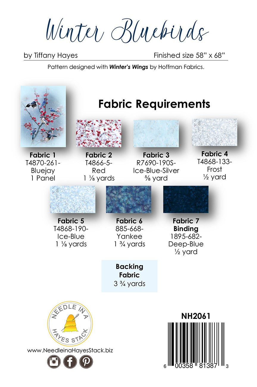 This pattern is designed with Winters Wings by Hoffman Fabrics. This beautiful winter panel is surrounded with crisp, beautiful stars. The quilt finishes at 58" x 68".