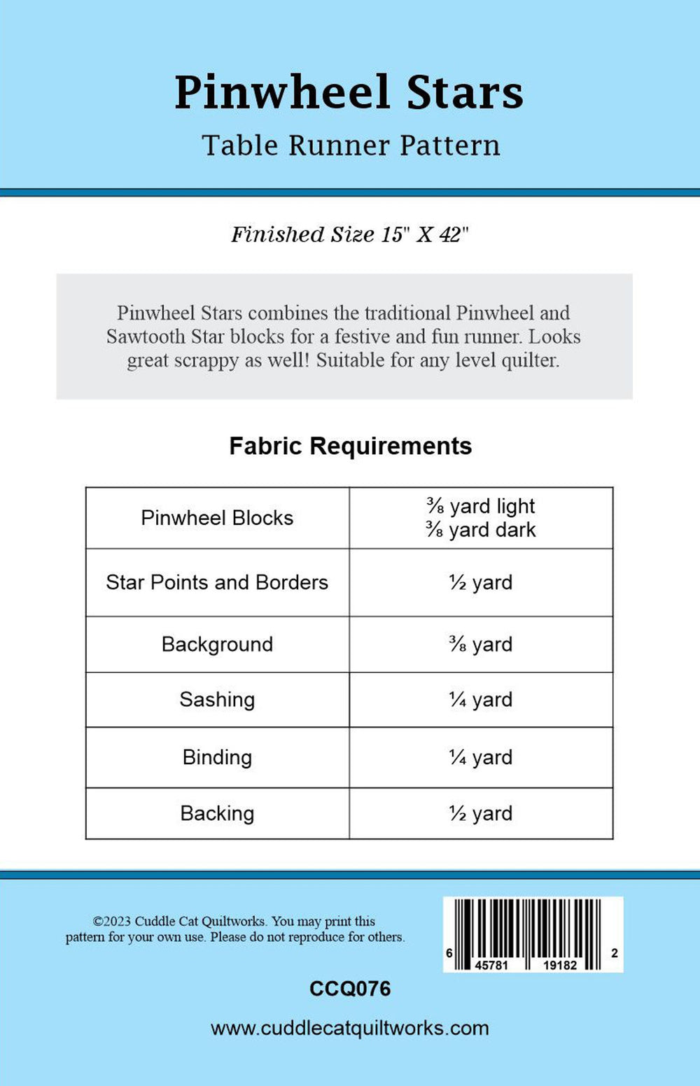 Pinwheel Stars combines the traditional Pinwheel and Saw- tooth Star blocks for a festive and fun runner.