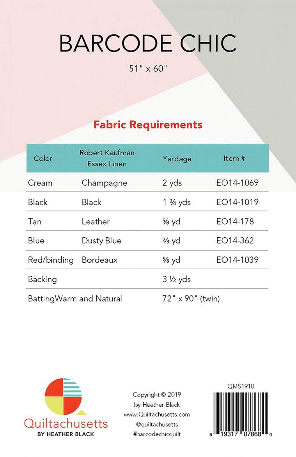 Barcode Chic is an advance beginner to intermediate quilt pattern that featuring flying geese, vertical and horizontal stripes for plenty of movement and depth.