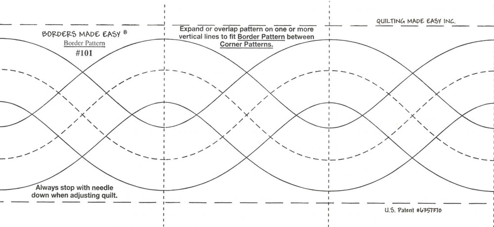 1 3/4in & 3in x 26Adhesive backed patterns for continuous machine quilting. Requires a regular stitching foot or walking foot. Recommended stitch length 8-10 stitches per inch. Corner pattern printed on pattern.