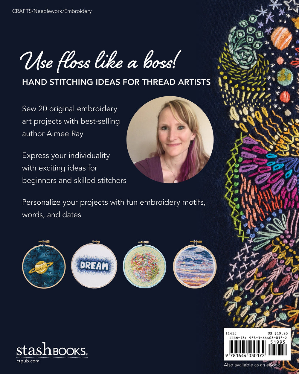 Create one-of-a-kind embroidery art using simple techniques! Best-selling author Aimee Ray of Doodle Stitching fame is back with the fresh motifs and contemporary inspiration her fans have come to love. With Aimee's help, you'll move beyond the pattern to reflect your artistic self¿making hoop framed embroidery art, decorative keepsakes, pillows, patches, charms, and fabric scrapbooks. Create artwork you'll display in every room of the house! Mix and match motifs and personalize wall art with lettering and numbers. With 20 projects to personalize, Doodle Stitching Embroidery Art will intrigue both beginners and seasoned embroiderers.